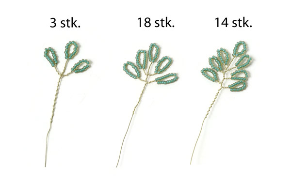 Die Zweige werden mit 0,4 mm Draht angefertigt. Fädle Perlen auf den Draht, bis du ein 6 cm langes Stück mit Perlen hast. Schiebe dann alle Perlen auf dem Draht vor.