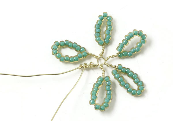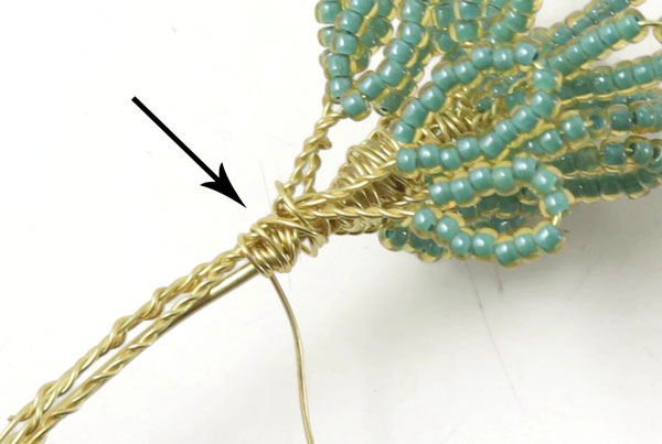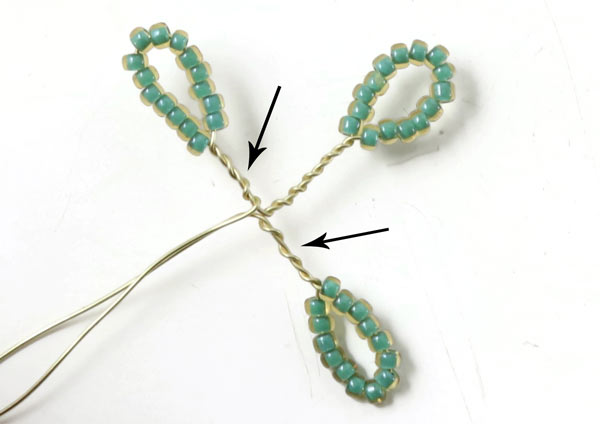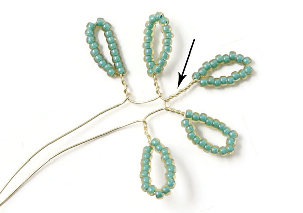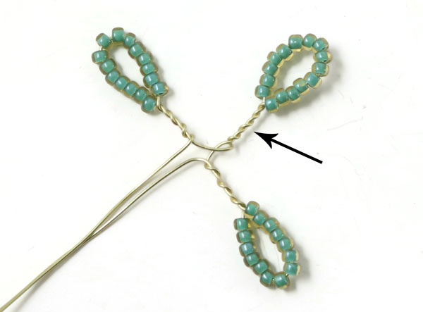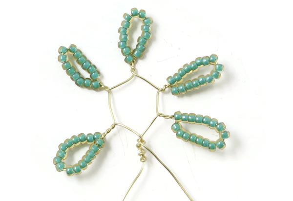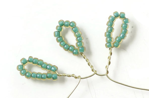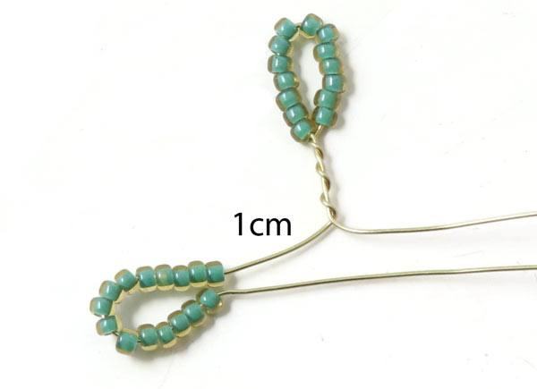 Winde die Drahtstücke wieder direkt unter den Perlen umeinander.
