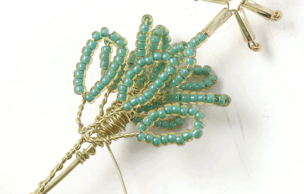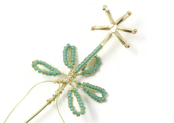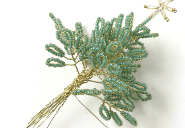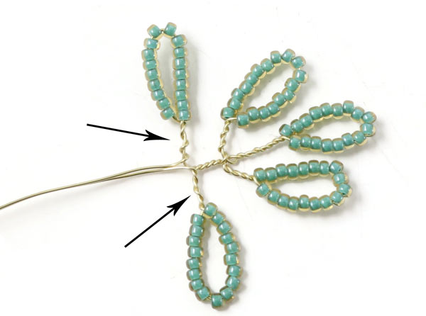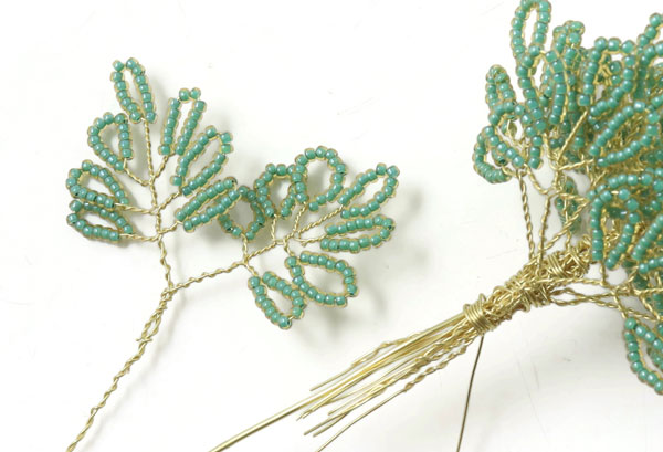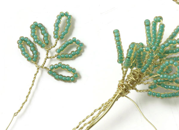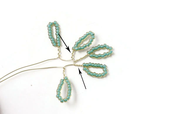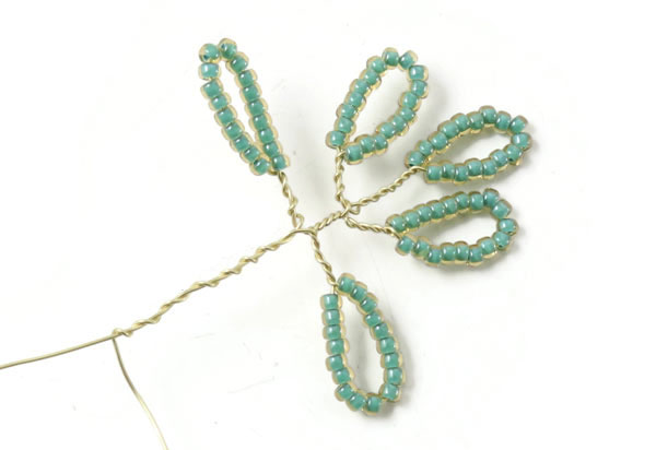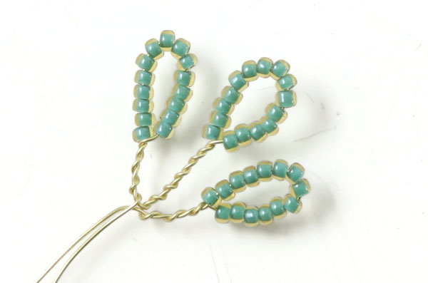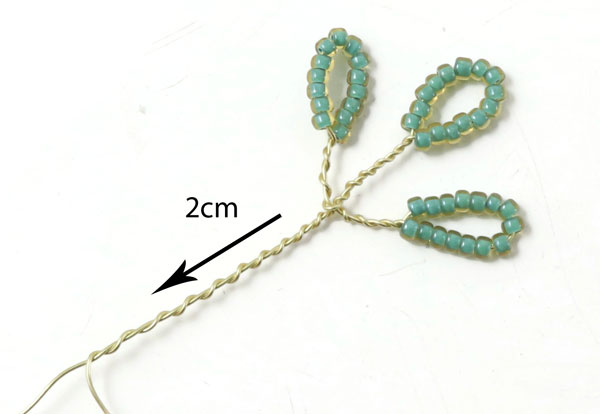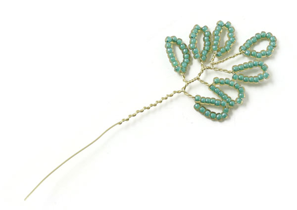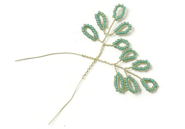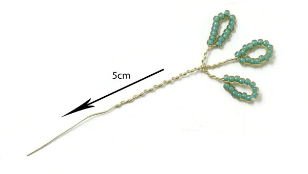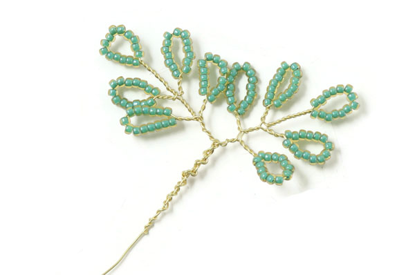 Das letzte Blatt an diesem Zweig wird genauso gemacht.... mit einem 2 cm langem Stück mit Perlen, die 1 cm entfernt von der letzten Windung platziert werden.