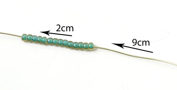 Ziehe 2 cm der Perlen auf dem Draht zurück. Stoppe ca. 9 cm vor dem Ende des Drahts.
