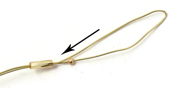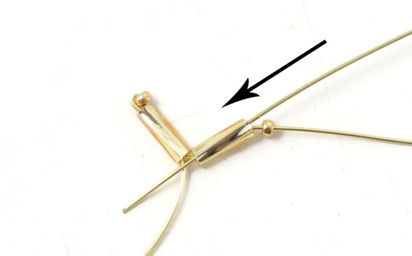 Überspringe die Goldperle ... und führe den Draht zurück durch die Rohrperle.