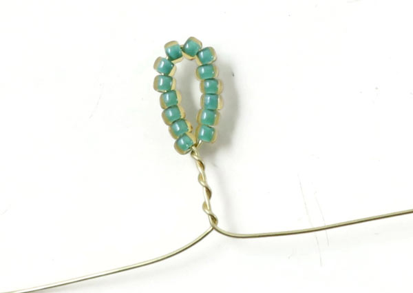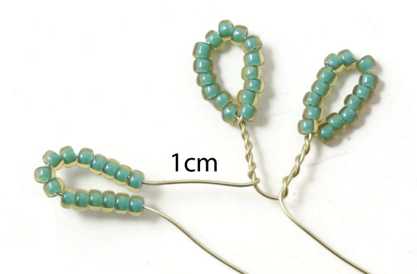 Danach biegst du das 2 cm lange Stück mit Perlen wieder um...