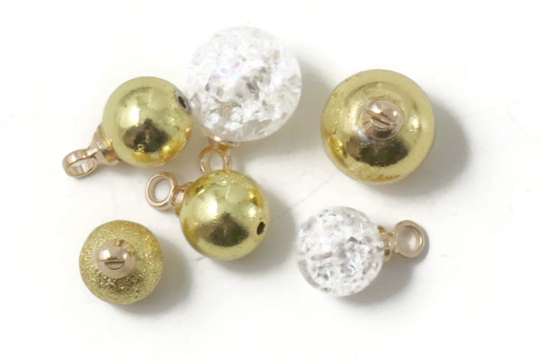 Mache kleine Christbaumkugeln als Baumschmuck. Wir haben Perlen mit 6 mm und 8 mm Durchmesser genommen und jeweils eine Stiftöse in das Loch jeder Perle geklebt.